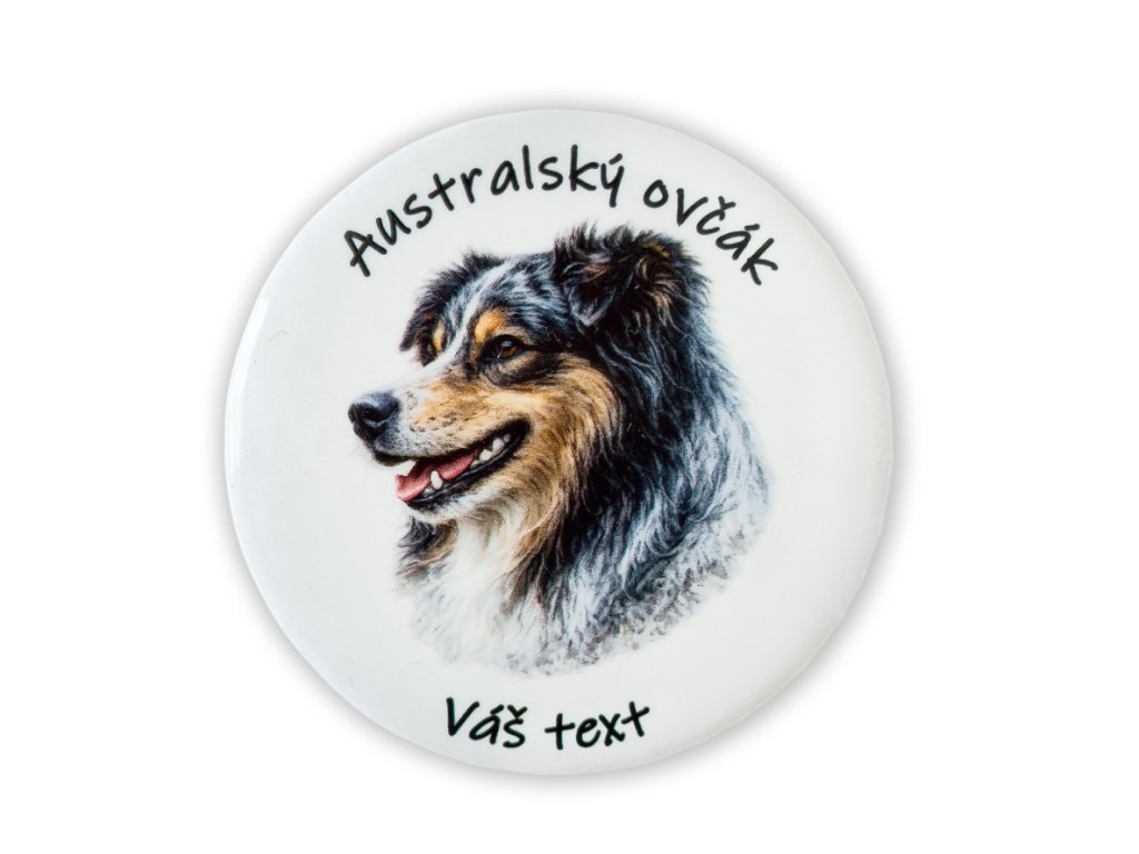 Vytvořte si vlastní magnetku nebo placku se jménem Vašeho australského ovčáka – přesně podle Vaší představy.