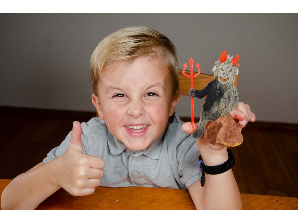 Dieses Teufelchen hat nur Umrisslinien, was das Ausmalen erleichtert. Wer eine größere Herausforderung sucht, kann sich für die Vollkörper-Version entscheiden, die besser für ältere Kinder geeignet ist.