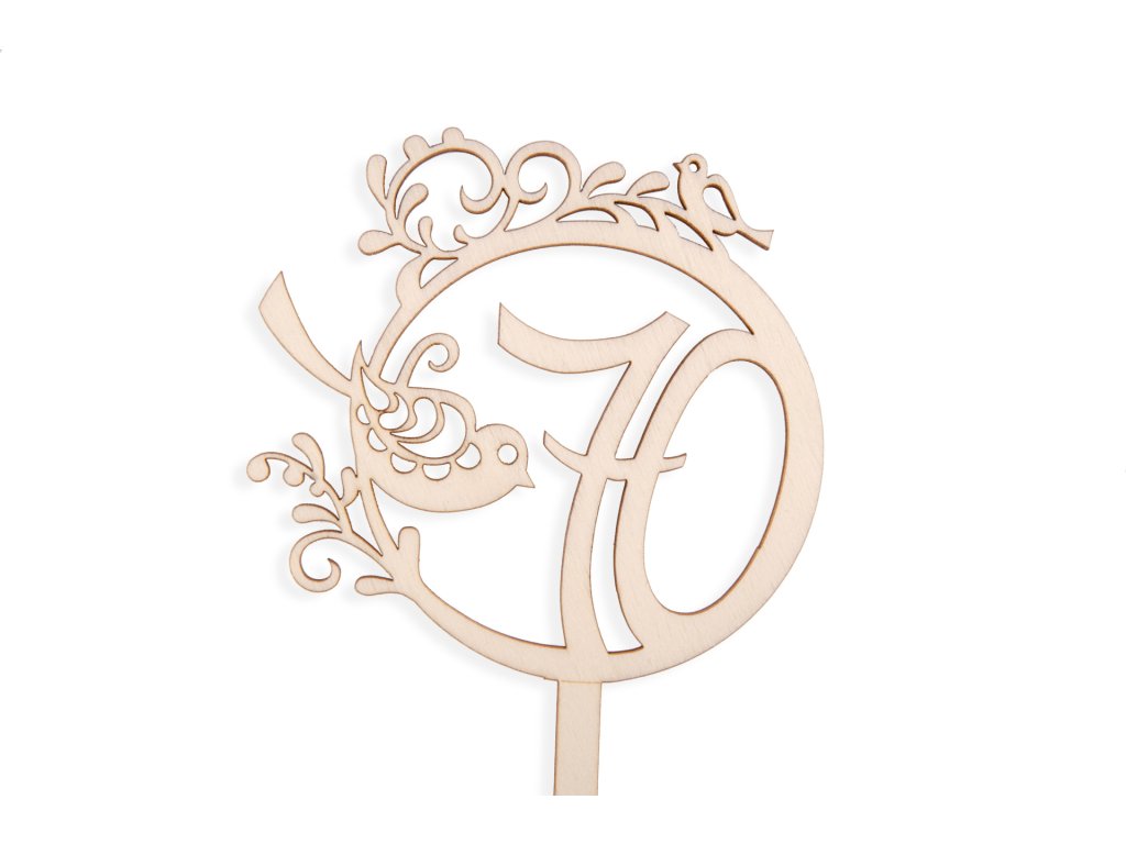 Chystáte oslavu sedmdesátin? Pak je náš dřevěný zápich s číslem 70 z české výroby tou pravou třešničkou na dortu! Vyrobený z topolové překližky o tloušťce 3 mm, skvěle doplní váš slavnostní dezert a dodá mu originální vzhled. Zápich je 14cm dlouhý.