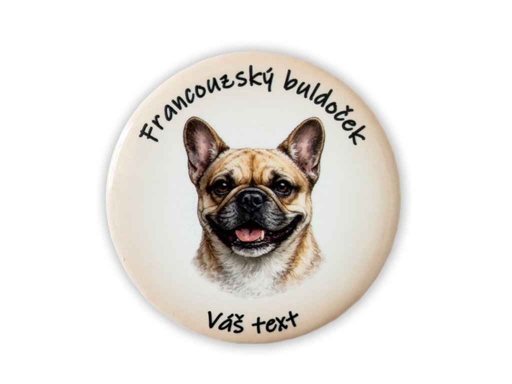 Vytvořte si vlastní magnetku nebo placku se jménem Vašeho francouzského buldočka – přesně podle Vaší představy.