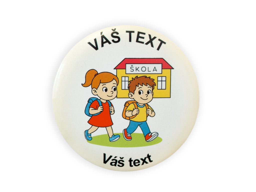 Kvalitní kovové pamětní magnetky a placky s UV potiskem pro připomenutí zápisu do 1. třídy. Personalizujeme podle Vašeho přání.