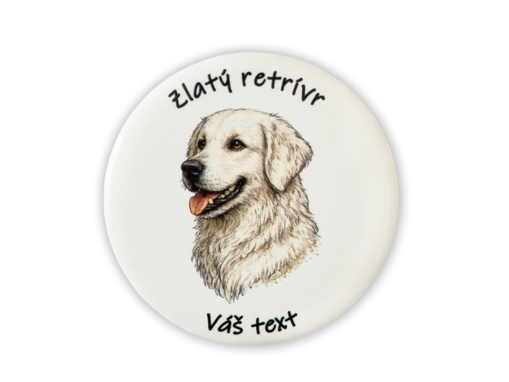 Vytvořte si vlastní magnetku nebo placku se jménem Vašeho zlatého retrívra – přesně podle Vaší představy.